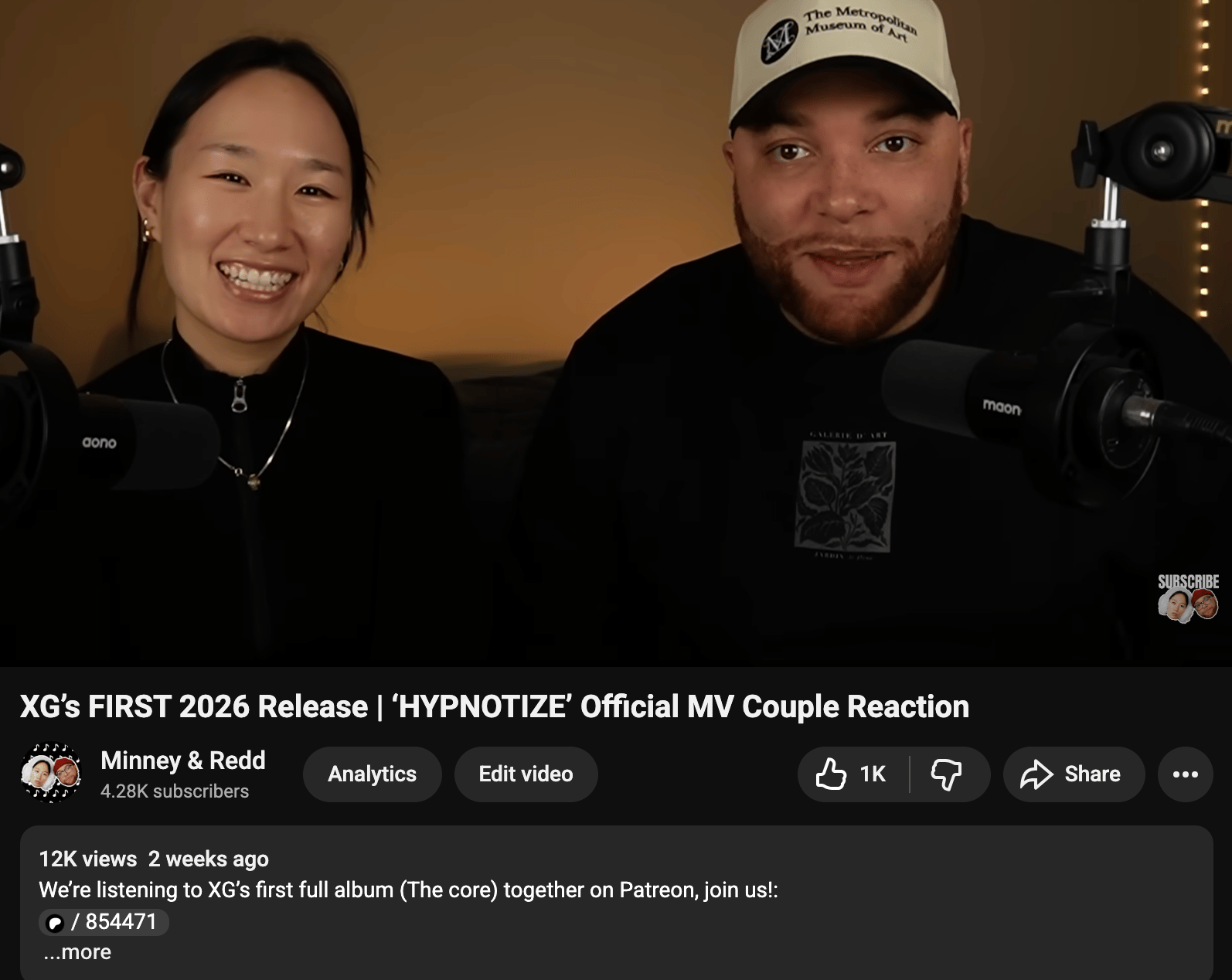 On weekends, I co-host a YouTube reaction channel with my husband, connecting with a global community of music lovers.