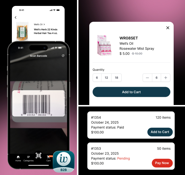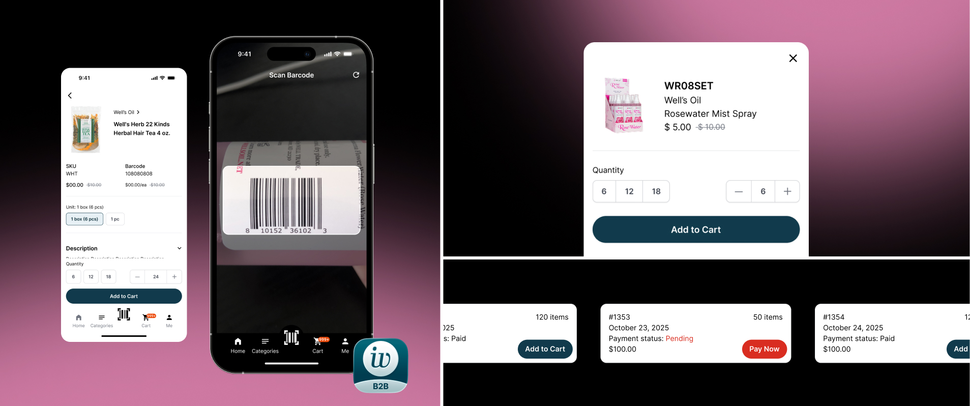 MVP B2B app for retail customers to quickly reorder products, integrated with Shopify for speed and simplicity.